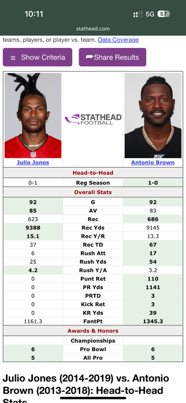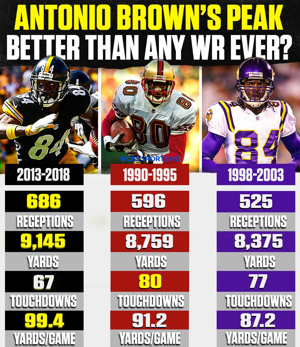 Meh, Roethlisberger averaged 300 passing yards per game during that stretch. This should be broken down by % of teams yards/receptions/TDs. Also Julio Jones averaged more receptions, yards per game and yards per catch during this same stretch(2013-2018)