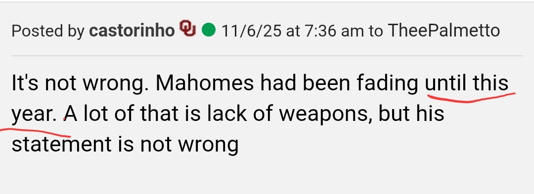 It's not wrong. Mahomes had been fading until this year. A lot of that is lack of weapons, but his statement is not wrong