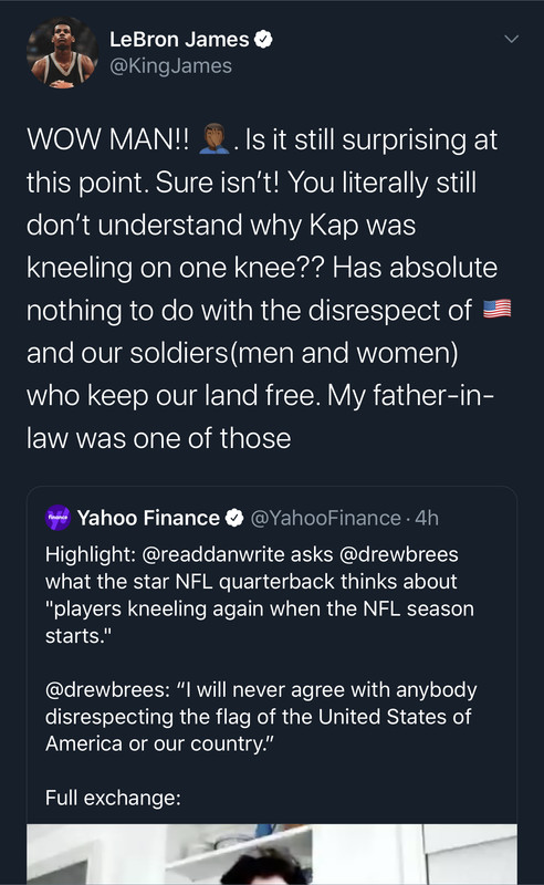 re: Will Drew Brees get cancelled over not supporting kneeling during the anthem?