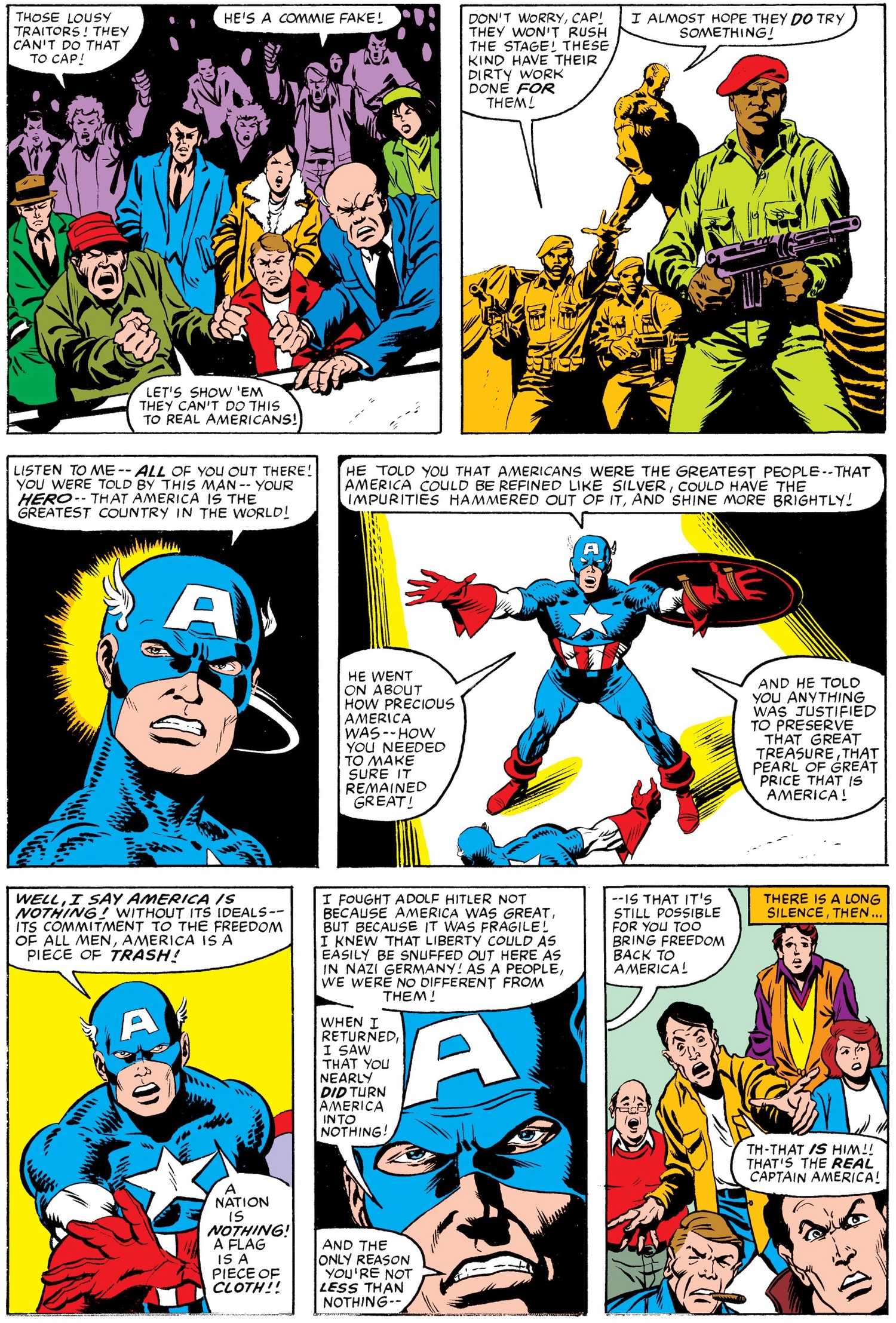 I couldn't care less about the "nuance" of a comic book. To claim specifically, like Mackie did, that Captain America should not represent America is nonsense. It's a completely illogical statement.