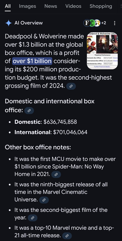 D&W was very profitable but they didn't profit 1 billion lol. That AI is dumb. Studios only get 50-60% of ticket sales, domestically. Even less in a lot of international markets.