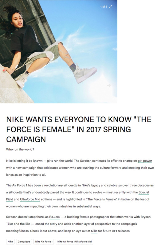 So you dont think the shirts every girl in the school was wearing with the logo for Nikes 2017 Spring ad campaign was part of a nike ad campaign because the shirt doesnt feature a swoosh? Even tho nike did use that shirt for the ad campaign and you can still buy it online.