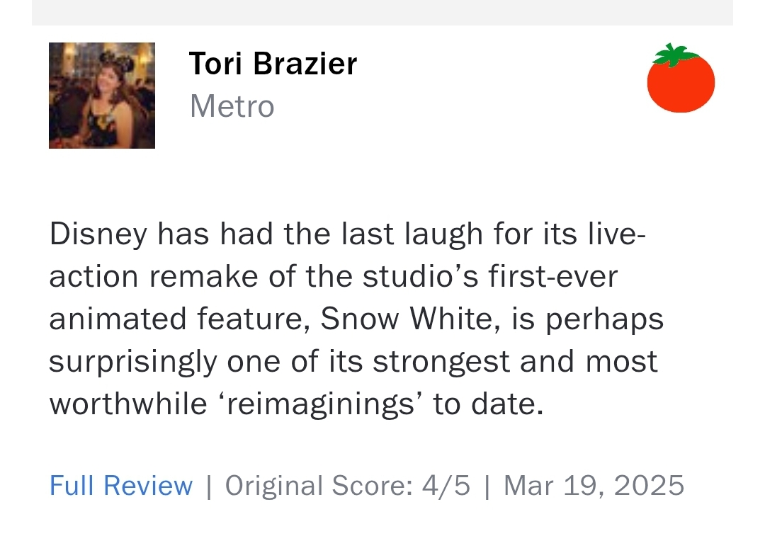 re: Disney's Snow White "Best live action remake in years" | 74% Popcornmeter