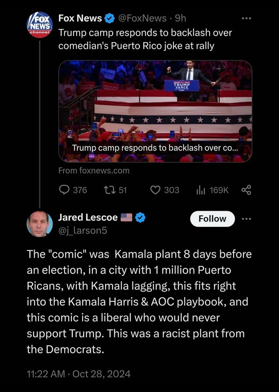 overall he was literally just the opening comedy relief for a long rally, but our media is so hyper focused on negative and division they blow it up into a huge story (while George Lopez racist joke wasn’t even a thing, because who cares about a random joke)