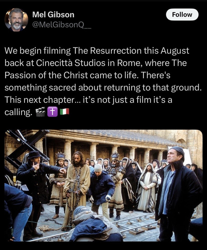 Mel Gibson posts announcement for Resurrection of The Christ