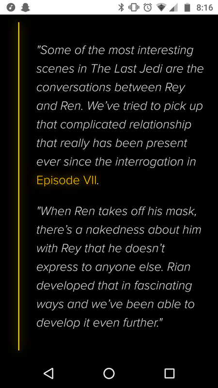 Heres a quote from one of the writers about the Rey/Kylo interactions. Definitely hoping to hype up the Twilight/50 shades female crowd.