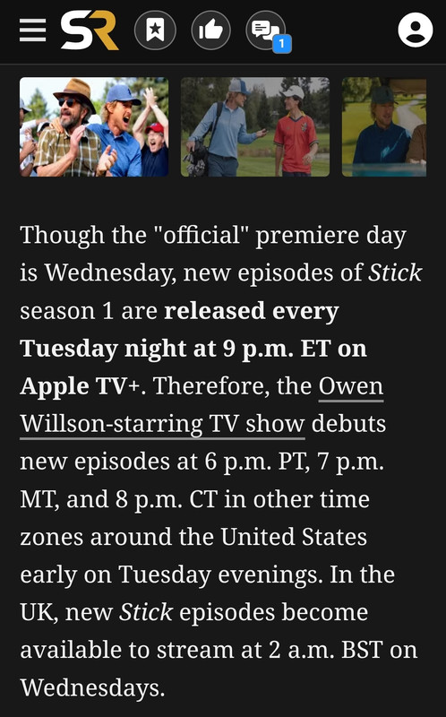 re: Stick (AppleTV+) Owen Wilson Golf Dramedy