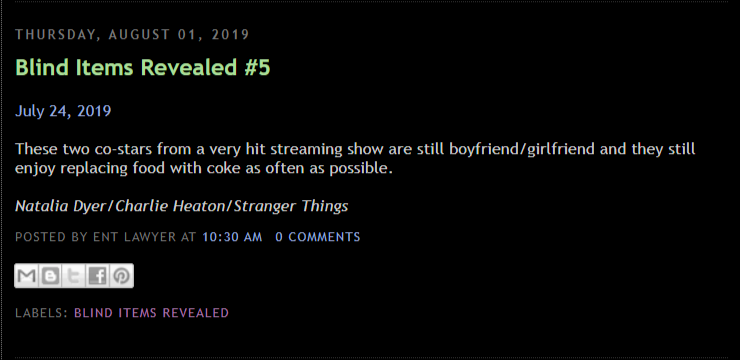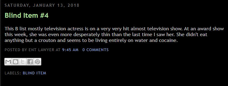 At this point, with their track record for being ahead of the curve on many of these blind items, if Enty says MBB is already going under the knife at 18 and developing a nasty coke habit, I'm definitely taking it under consideration, no matter how much I hope it isn't true.