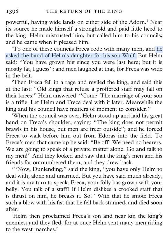 I posted a screenshot of Tolkien's own writing about Helm's daughter and how he insulted the guy asking for her hand in marriage and it caused affront and then they later went to war with.