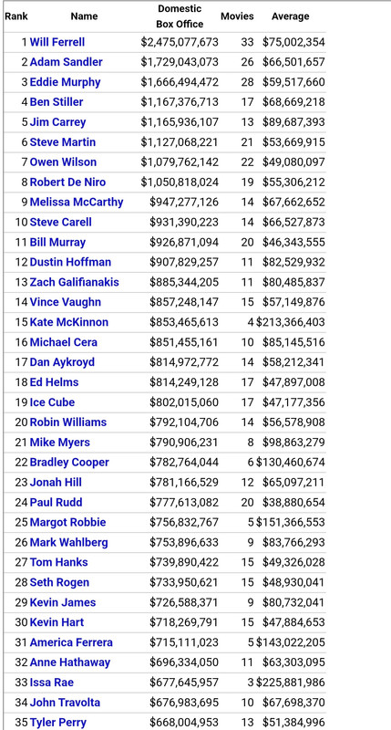 Looking at this list of comedic box office draws, not many of these actors/actresses have had any big movies, lately.