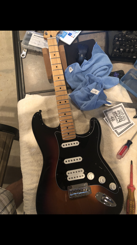 Looks good, although I’m partial to a tortoise shell pickup guard on all Fender guitars.