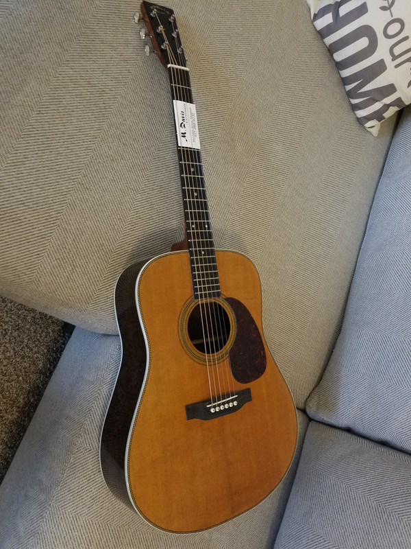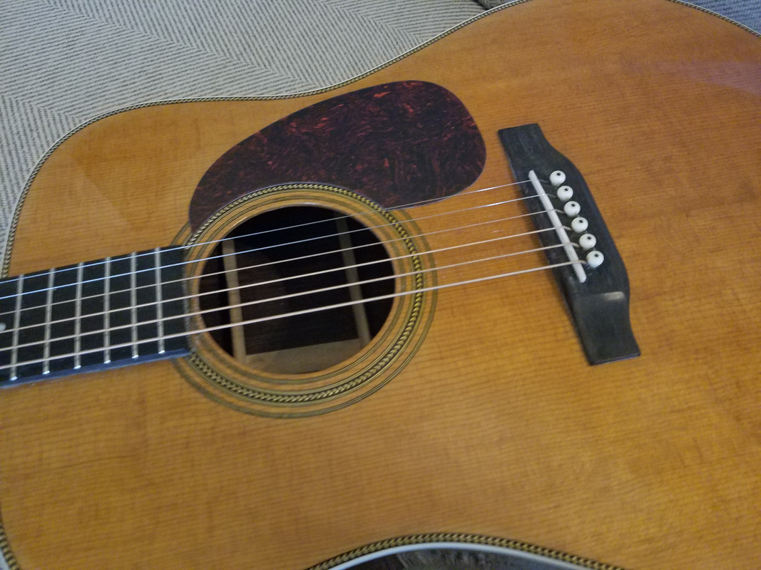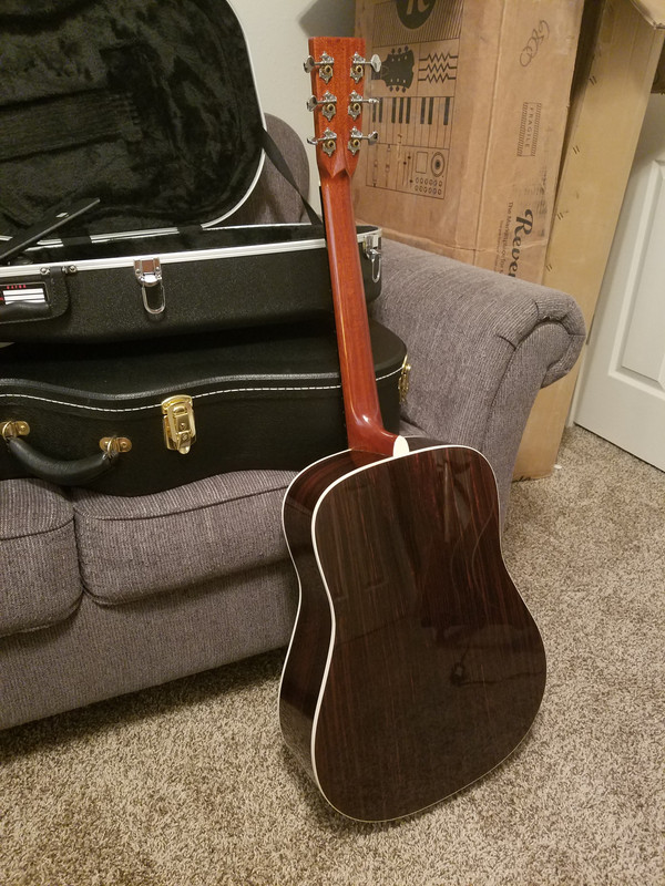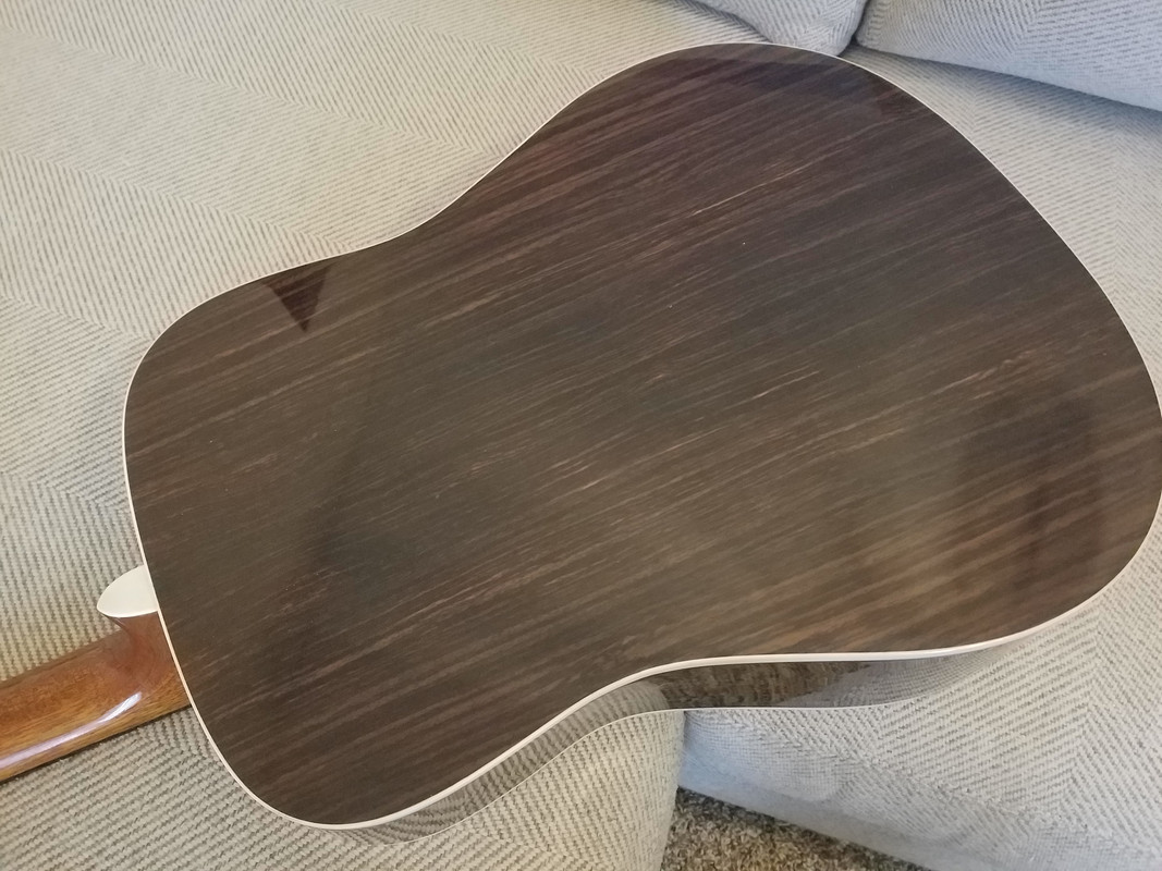 Anyway, this thing is a cannon. Built based on a prewar Martin D28, it has East Indian rosewood back and sides (very pretty wood, doesn't show up well in the photos due to reflections).