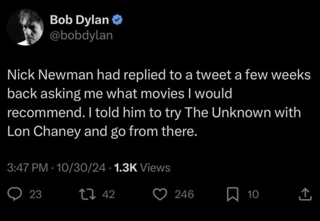 Here’s 70 hours of just Dylan songs covered by every genre of musician. People in the know, know.