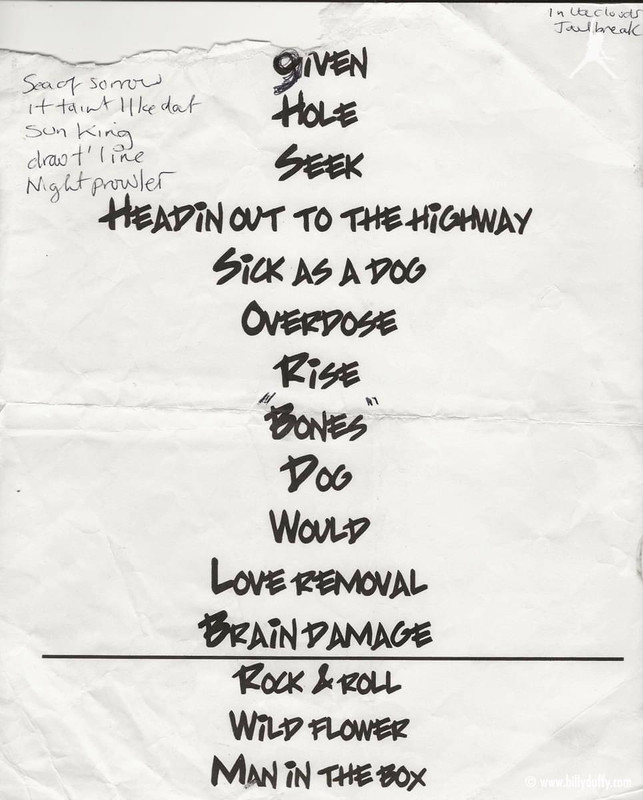 "We never released any recorded music but played a number of shows that year and this is a set list from one of those. As you can see there were a few Cult songs in there and the hand written titles at the top was just me looking at possible alternative songs we could play."