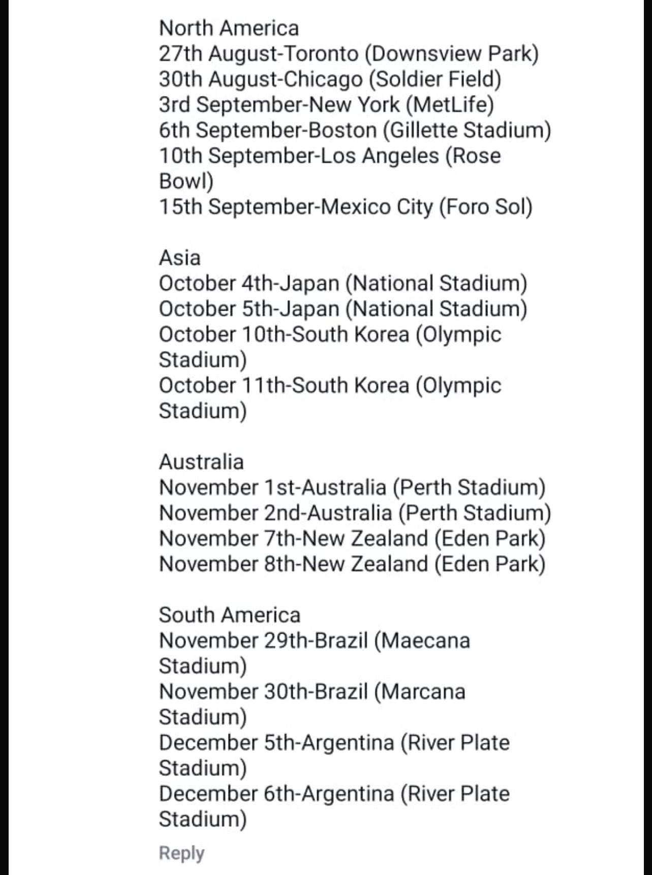 There's plenty more open dates that will be announced after the first dates sell out. (For instance, I believe they have reserved up to 10 days at wembley alone.) I'm not even bothering with tickets until more dates announced.