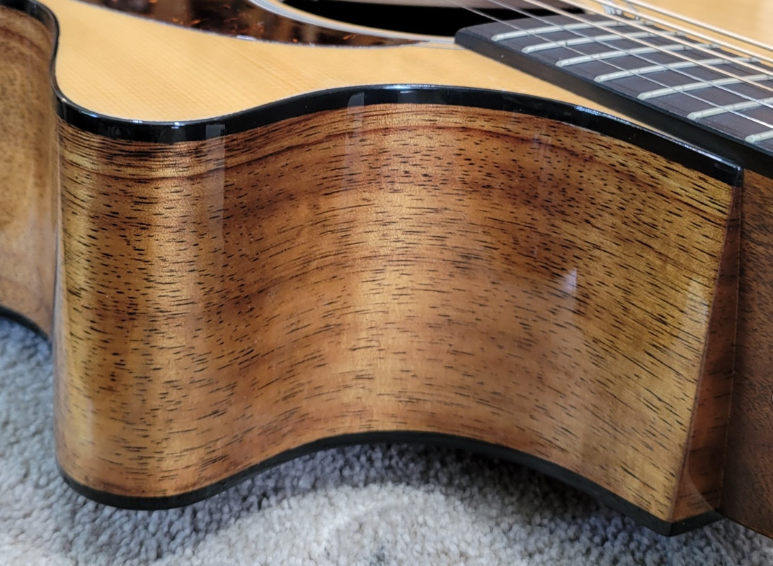 I'm told this run was built around the availability of a half-dozen koa back and side sets left over from a discontinued high-dollar koa-backed series of Martins. For the five-guitar run, Martin committed the six koa sets to five guitars, with one extra koa set in case one split during steaming and bending. Because the koa was the build's eye candy, bindings and inlays and rosette intricacy was kept minimal. The spruce top is perfect, old growth and tight grained with some silking figuring. I don't know the spruce species, you usually can't tell just looking at it, but I'd assume it's simply very, very nice sitka.