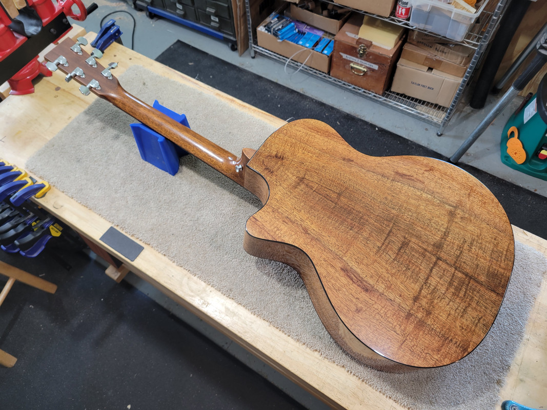 My only nice acoustic in recent times has been the '73 Hummingbird I restored for the shop. It sounded like a deity after I did my resto. I actually made it sound like more Martin'ey. But I never bonded with its thinner width neck enough to play it a lot. The Martin above has a 1 3/4" wide neck at the nut - plenty of room for my fingers to move about unsquinched. It will get played, and frequently.
