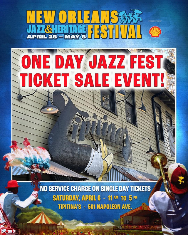 One-day Jazz Fest Ticket Sale at Tipitina's Saturday, April 6. 11 am to 5 pm.