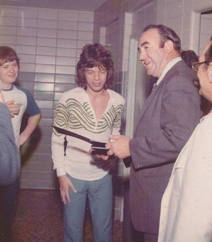 Mick Jagger accepting the Key to the City for the Stones from Mobile Mayor Robert Doyle, 1972