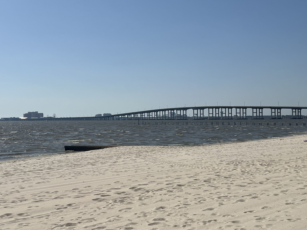 Ocean Springs Beach with Biloxi Bay Bridge and Biloxi in background