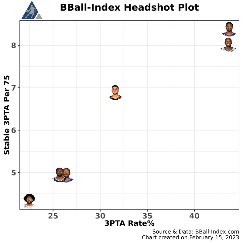 But yea, the 40.9% shooting from 3 for BI just isn't as meaningful when it's on lower attempts, with BI at 3.8