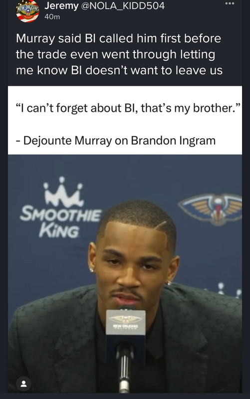 I can see why Trae and Murray couldn't co exist in the locker room just after 1 press conference. Murray doesn't seem like the type that would defer to someone with Trae Young's reputation, and Trae probably didn't appreciate Murray's "natural born leadership".