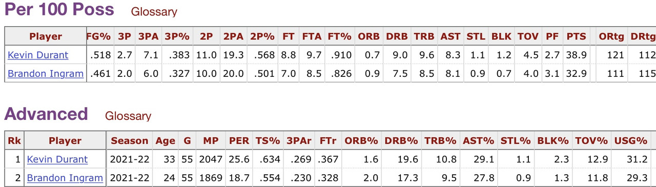 Durant just posted the same durant line of the last ten years. And Ingram did nothing better than Durant last year