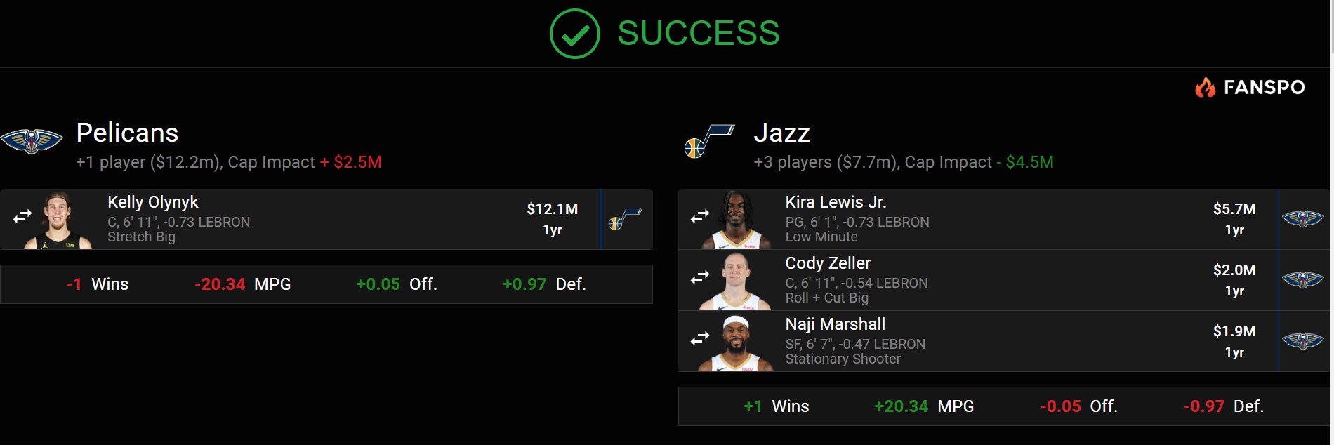 I really like this trade. And it helps us in so many ways. But again comes back to the question- will Gayle go into tax this year? And do it they do it for Olynyk?