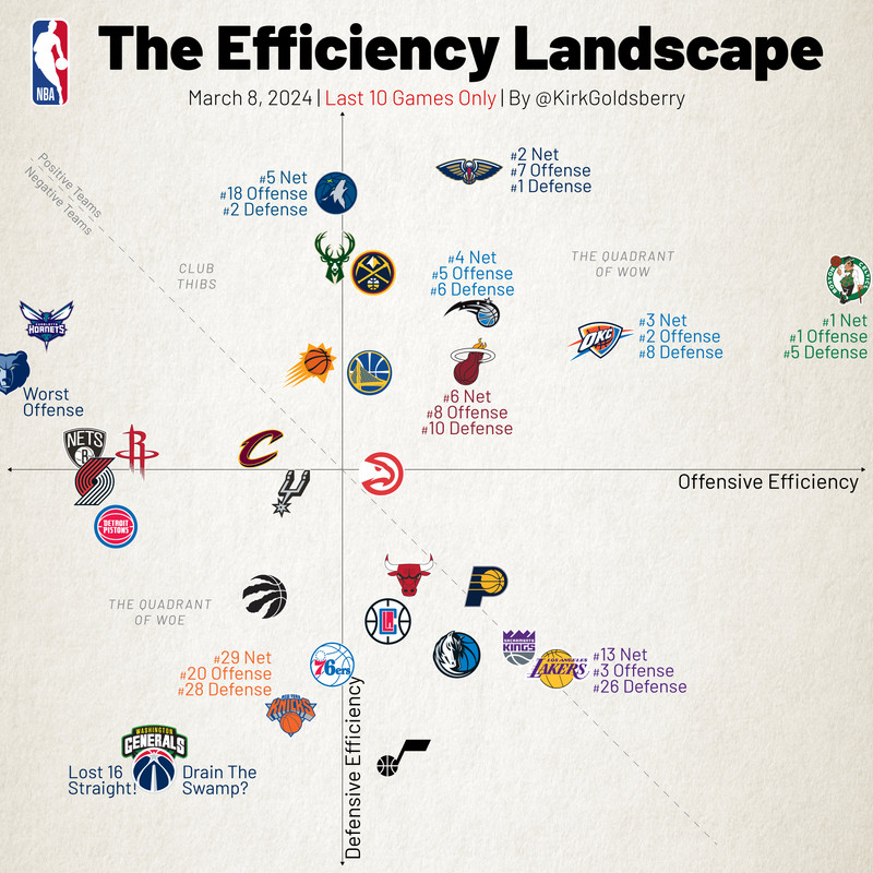 I haven't paid attention to Dallas's schedule, but they must have some blowout wins and close losses. #5 net over last 10, 5-5 record.