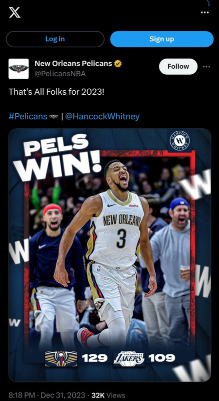 I bitch a lot about the pels on here but this was a great win and great way to end 2023. Pels took it personal and hit the lakers hard! Go pels and happy new year fellas!!