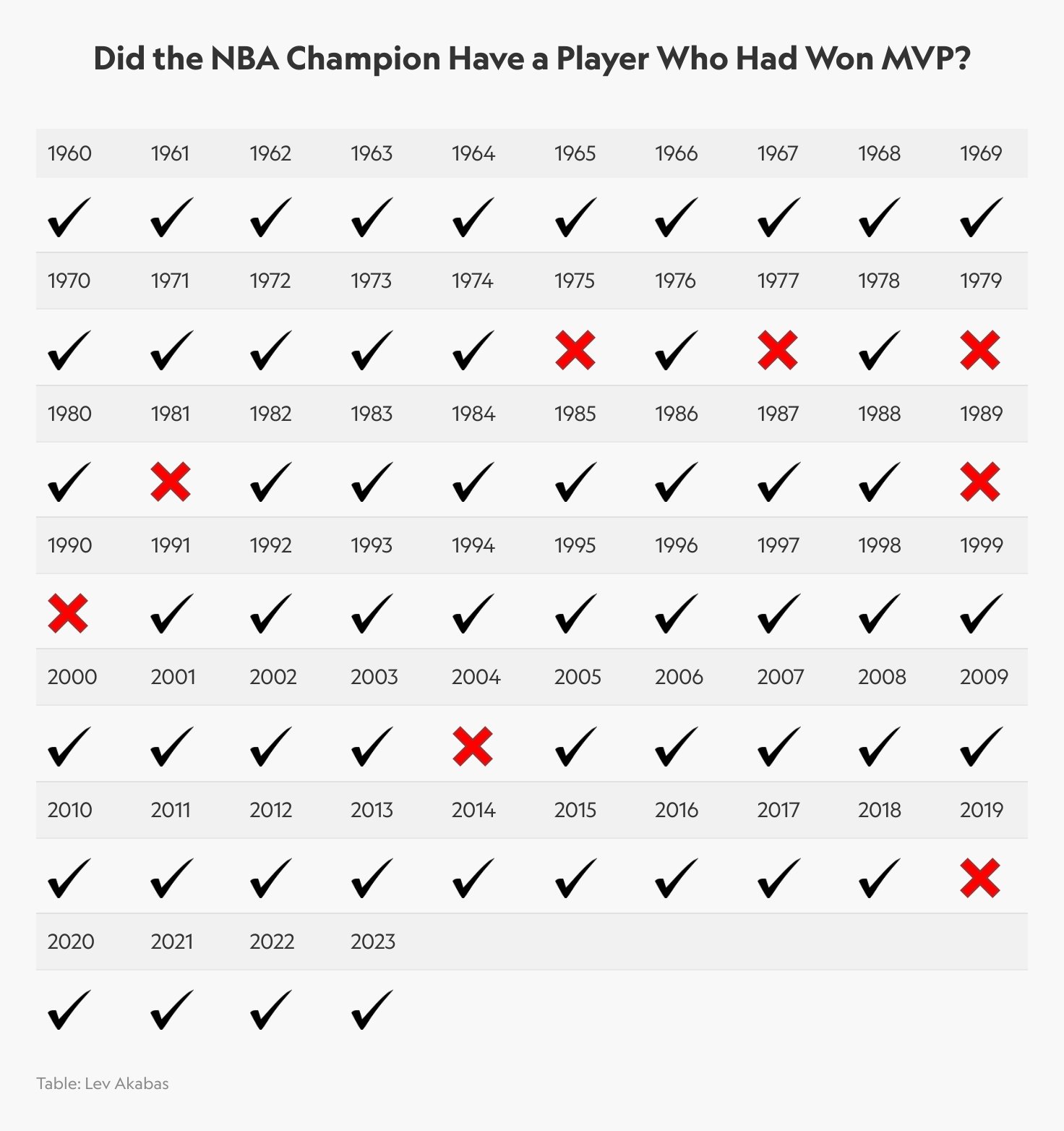 Basically if you don't have a guy that has won MVP or will win MVP you don't stand a chance