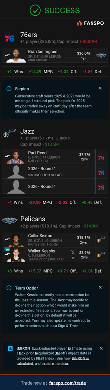 I don't see how we're a better team coming out of this trade. You come out with a guy that doesn't space the floor and creates a logjam with Trey. You get a defensive center that is more offensively challenged than Rudy Gobert, and an undersized defensive wing that can't shoot.