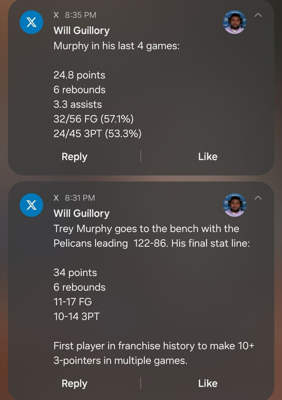 One of the highlights I saw posted from last night showed Trey's man sagging into the lane to try and cut off a Zion drive, so Zion kicked it out to a wide open Trey for a 3.