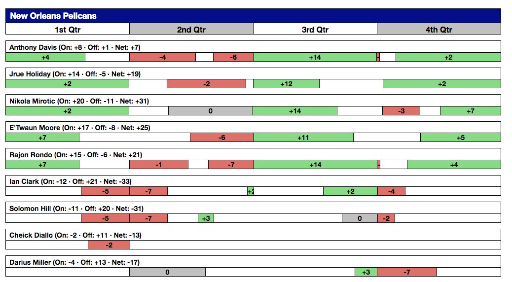 in 60 minutes of playoff time, rondo/jrue/moore/AD/niko are +28.9 (+16.4 in 200 reg season minutes).