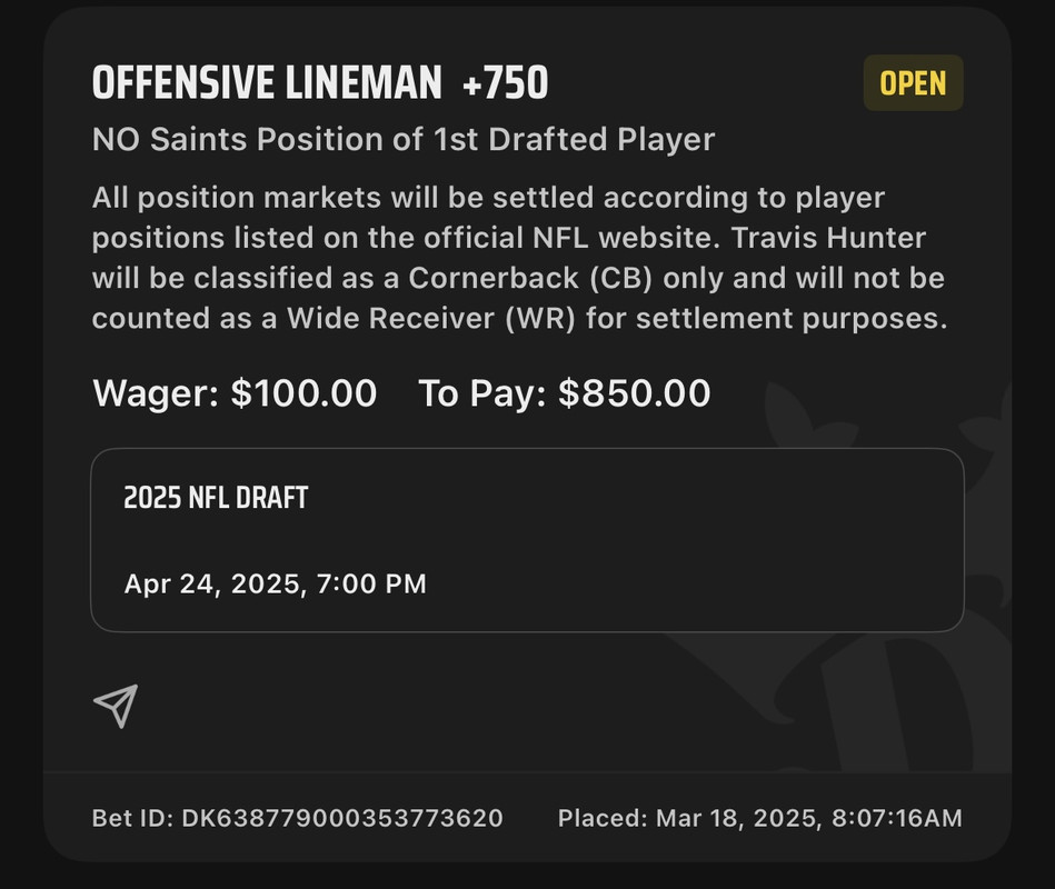 This is probably worst case scenario for me tbh. There’s no way Jeanty doesn’t go top 8. And if he does, I’d be willing to bet the Saints take him or someone bites on a trade up - and there’s been actual smoke the Saints want to do this unlike previous years where it was mostly fan’s wanting them to.