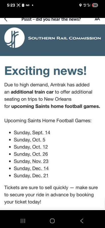 Amtrak just added another car to the Mardi Gras Express for Sunday games(pic)