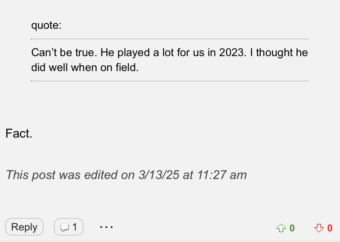 Clearly not. You responded Fact to this guy saying Rico Payton played a lot for us in 2023