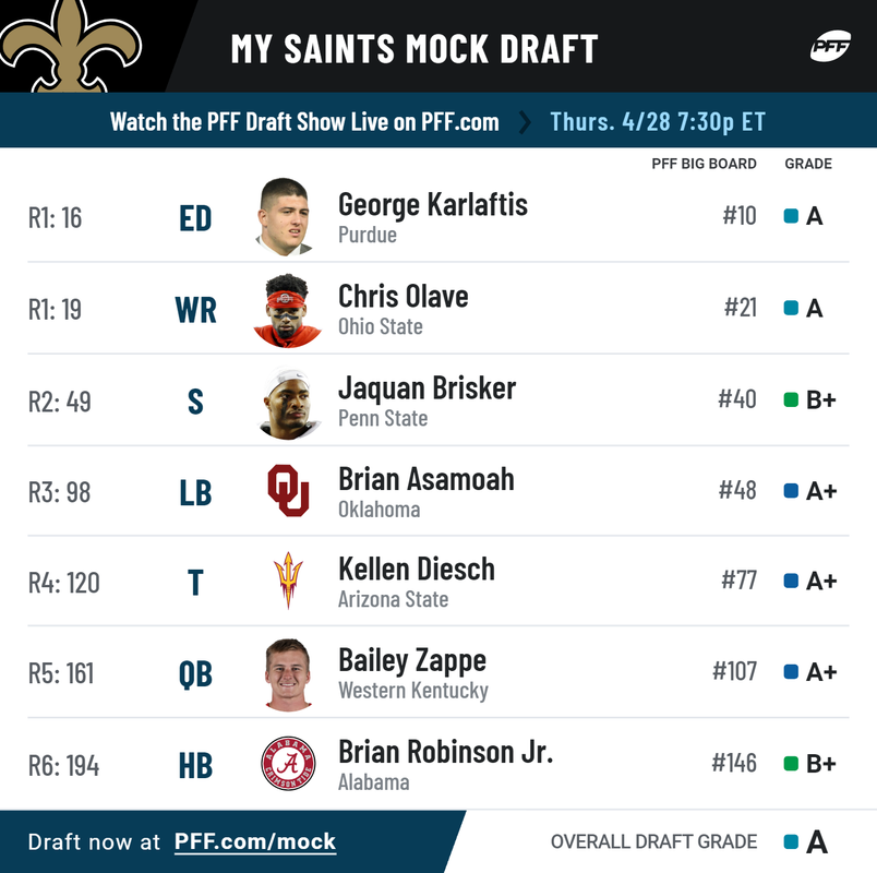 PFF Overall Grade A not that it matters as this is just a valuation of their rankings of the players and where they are selected.