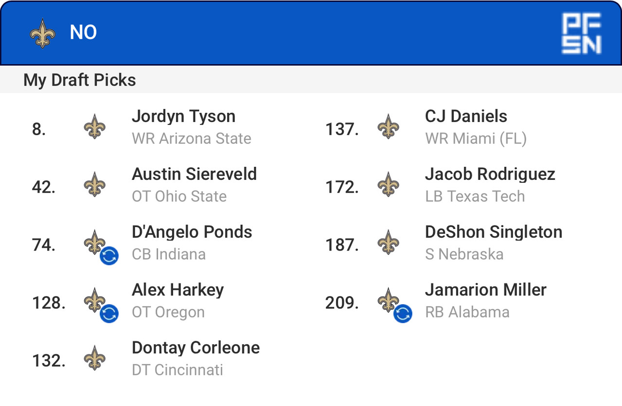 Obviously I love every pick except Tyson. I just really want a receiver in the first . Would really like to see Shough cook with more than one legit good receiver.