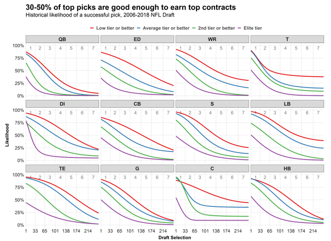 The odds of finding a good QB after the 1st round are much lower than other positions based on recent history.
