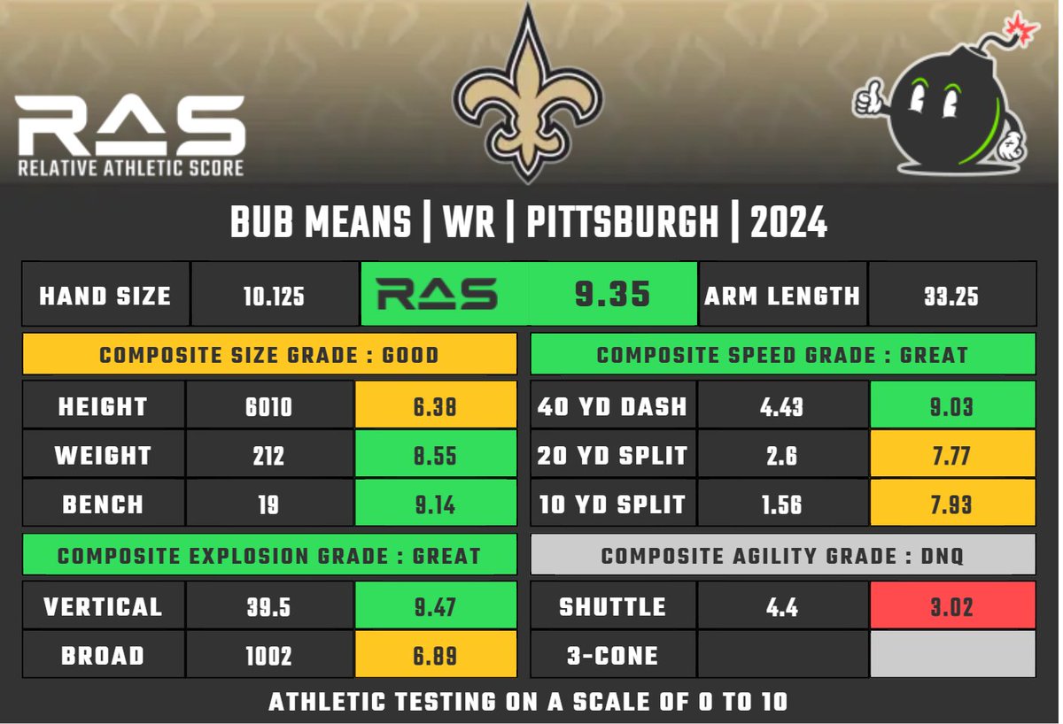 For us, it's definitely size. The Saints have thresholds at every position and I am very sure he is below them and probably not even on their board. Dunno about the rest of the league but definitely the case for us.