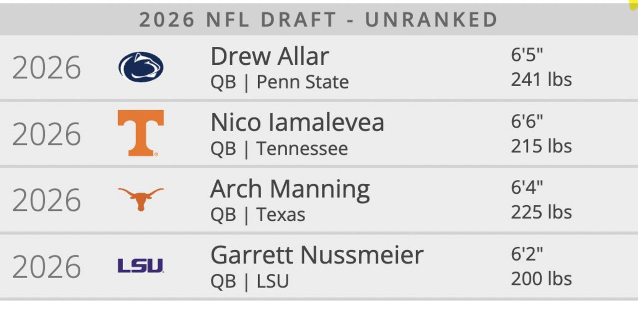 For you to include Nuss in that shows your lack of football IQ. Nuss will not be a mid tier NfL QB