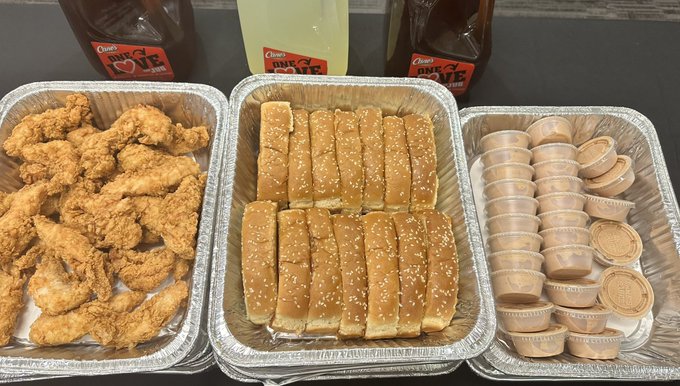 Meal prep in the #SaintsDraft Media room via our friends at @raisingcanes