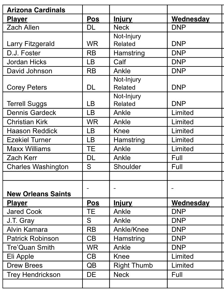 The cardinals haven’t beaten anyone with a pulse. Don’t rush Brees back. Bridgewater at home should be able to put up 24 which should be plenty against the cardinals