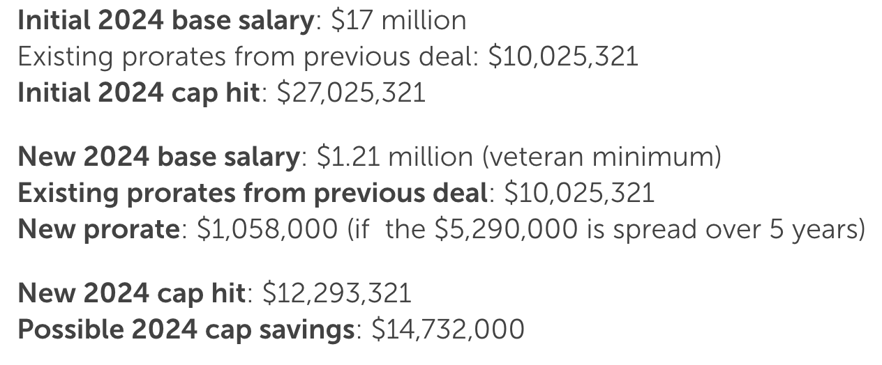 Would drop his cap hit from $27M to 18.6M; saving about $8.4M from the cap?