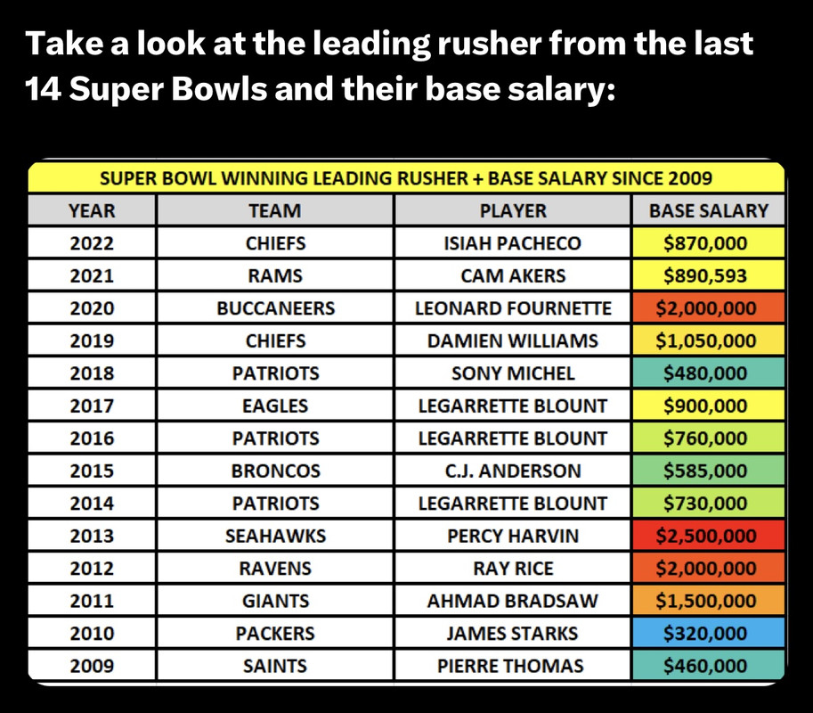 This isn't even really about that. RBs are a dime a dozen and can be had super cheap. I'd have rather taken this $4M/AAV and used it to upgrade our edge or sign a higher class of DI than one of the guys we signed today. That's worth a lot more than a RB.