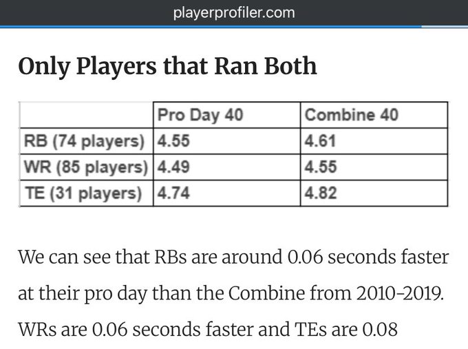 The combine or pro day shouldn't outweigh the body of work over a 3 or 4 year college career. Yet a lot of time it does and very good players drop and become steals for some team who trusts the film. Very poor players wow in some area on one particular day and get drafted much higher than they should be and are considered busts, when in reality they never had the body of work to suggest that they would succeed.
