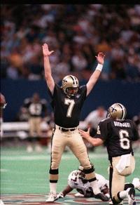 2011: Beat the Falcons in OT on a Kasay FG. Payton coached the game on crutches.