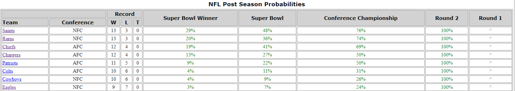 We may get the two worst teams left in the postseason if Dallas somehow pulls off the upset against L.A. We couldnt have asked for a better scenario! Maybe we'll be fortunate enough to get the Colts in the SB too and replay SB XLIV. We would end up being at least a touchdown favorite in every game this postseason!