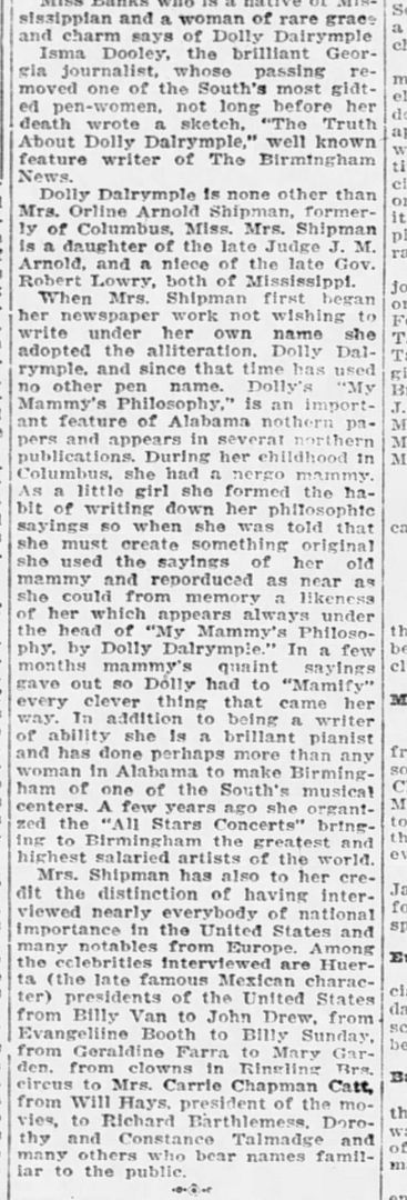 Mammy's Philosophy was a regular feature in the Jackson newspaper. It appeared several times a week. The author was the daughter of a Mississippi Supreme Court justice. She quoted her maid or "Mammy" as they were called back then.